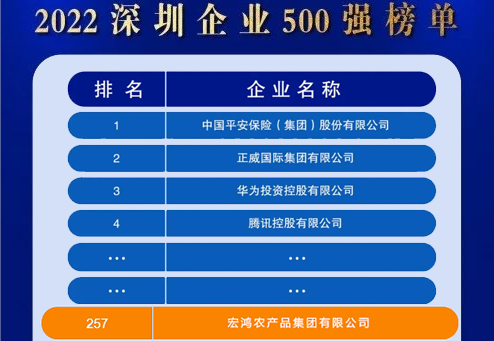 Good news | The list of Shenzhen Top 500 Enterprises 2022 was announced, and Honghong Group has been listed for 5 consecutive years